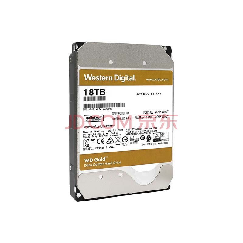 商品相册:西部数据(WD)18TB 企业级机械硬盘 WD Gold 西数金盘 SATA 7200转512MB CMR垂直 服务器硬盘 3.5英寸WD181VRYZ第