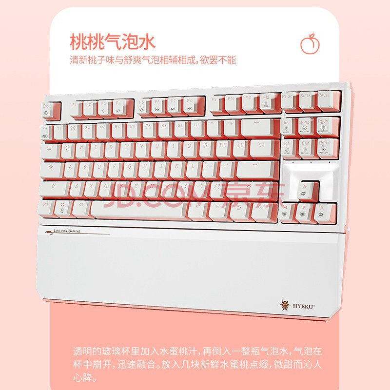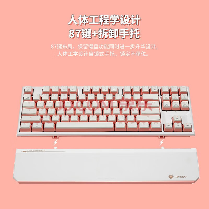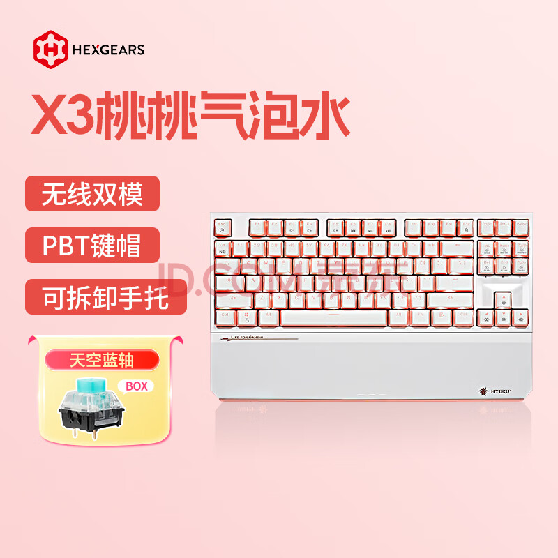 商品相册:黑峡谷(Hyeku)X3 87键有线/无线双模电竞机械游戏键盘办公PBT键帽凯华BOX新轴附卡扣腕托桃桃气泡水凯华天空蓝轴第