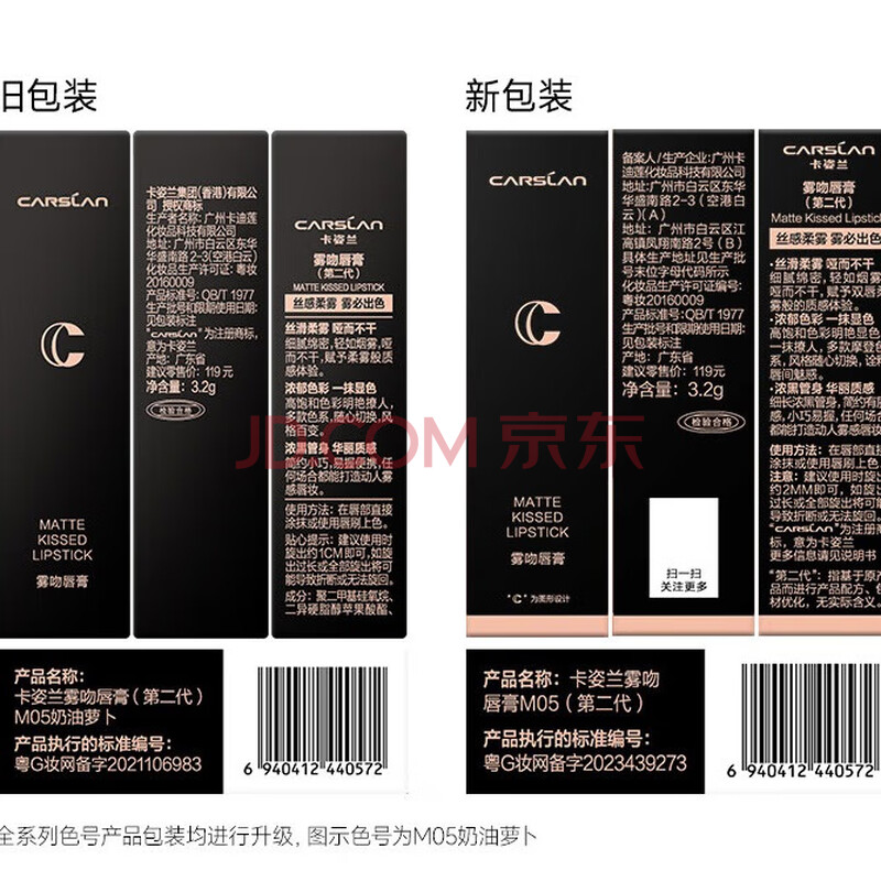 商品相册:卡姿兰(Carslan)雾吻口红唇膏不易沾杯哑光显白M07(焦糖拿铁)3.2g 生日礼物送女生第