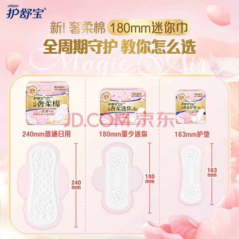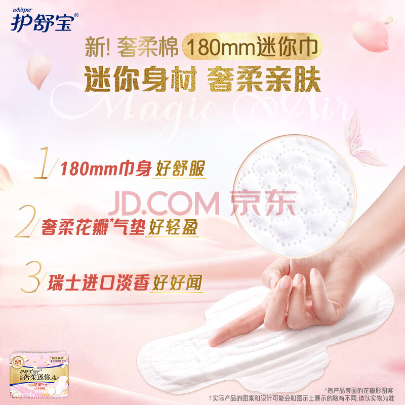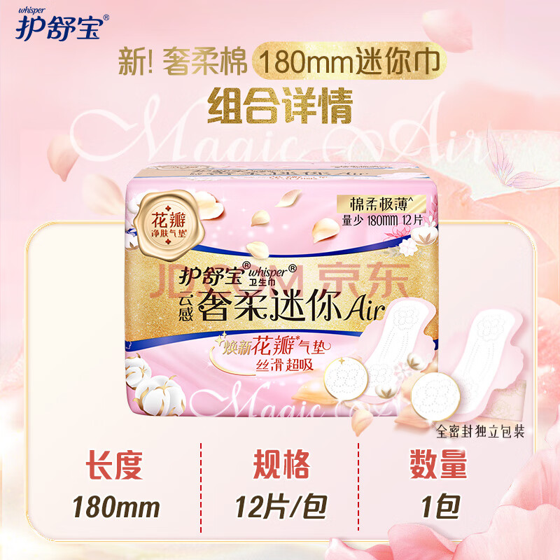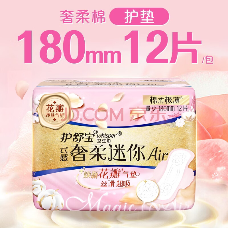 商品相册:护舒宝奢柔棉迷你卫生巾量少日用180mm12片姨妈巾护垫试用京东自营第
