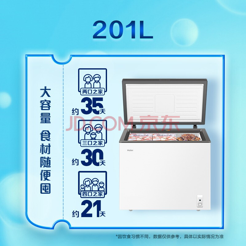 商品相册:海尔 Haier 201升 京馨 彩晶门体家用冰柜 气悬浮减霜80%冷柜 BC/BD-201GHLZS1第