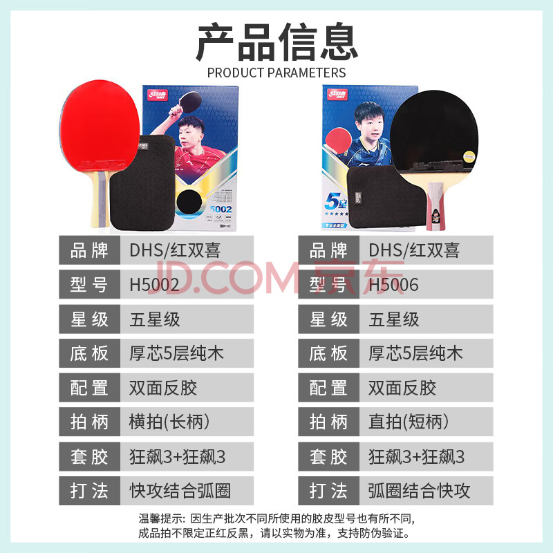 商品相册:红双喜(DHS)乒乓球拍五星级直拍H5006反胶单拍附拍包+乒乓球第