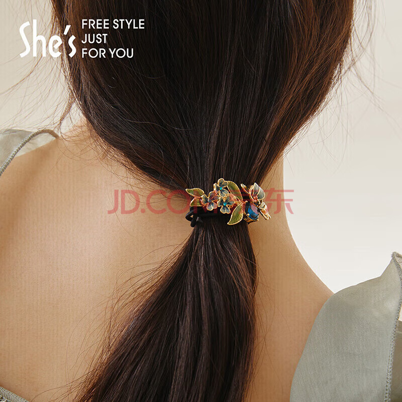 商品相册:She's茜子梵高鸢尾手工滴油头绳渐变花朵双股皮筋头绳生日礼物送女友第