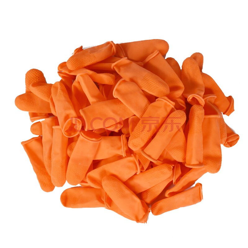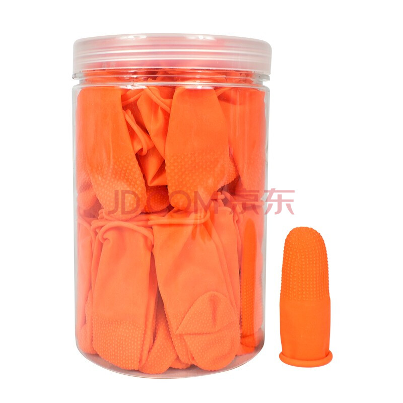 商品相册:齐鲁安然 乳胶手指套劳保防护耐磨防滑指套一次性无尘电子车间指头套 大号橘色带麻点约110只/罐第