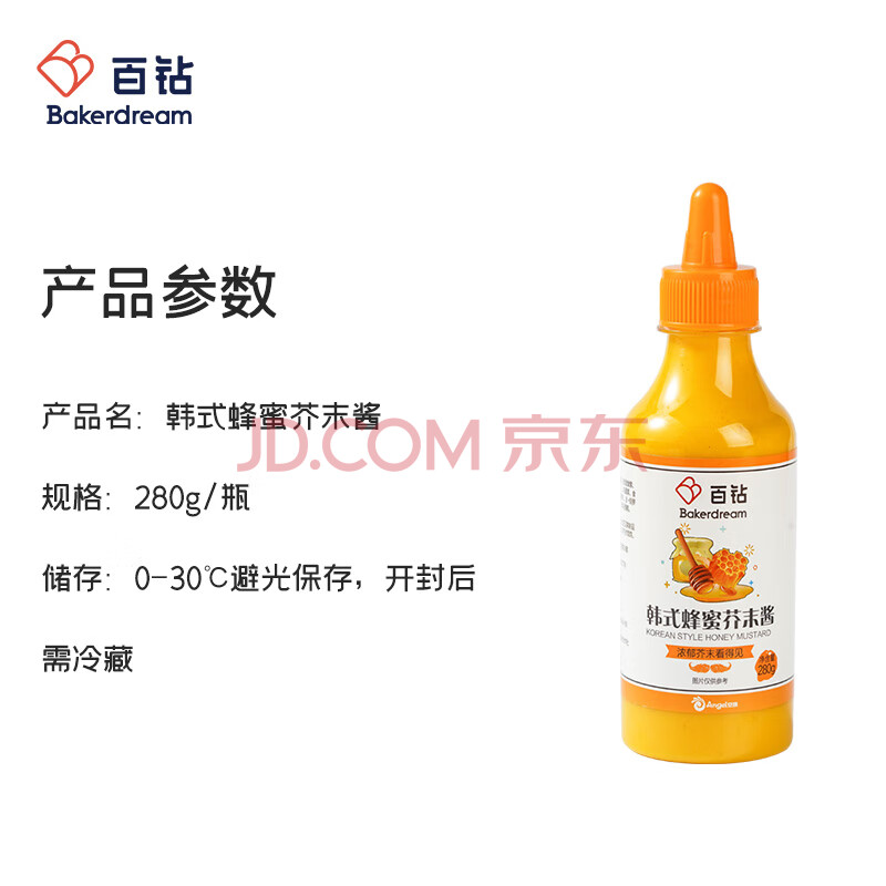 商品相册:百钻韩式蜂蜜芥末酱280g 家用黄芥末酱炸鸡排热狗披萨汉堡蘸酱沙拉酱第1张/共9