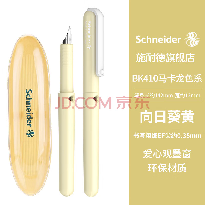 商品相册:施耐德(Schneider)钢笔学生成人直液式练字笔男女三四年级签字墨水笔开学季礼物必备用品EF尖BK410-向日葵黄161466第