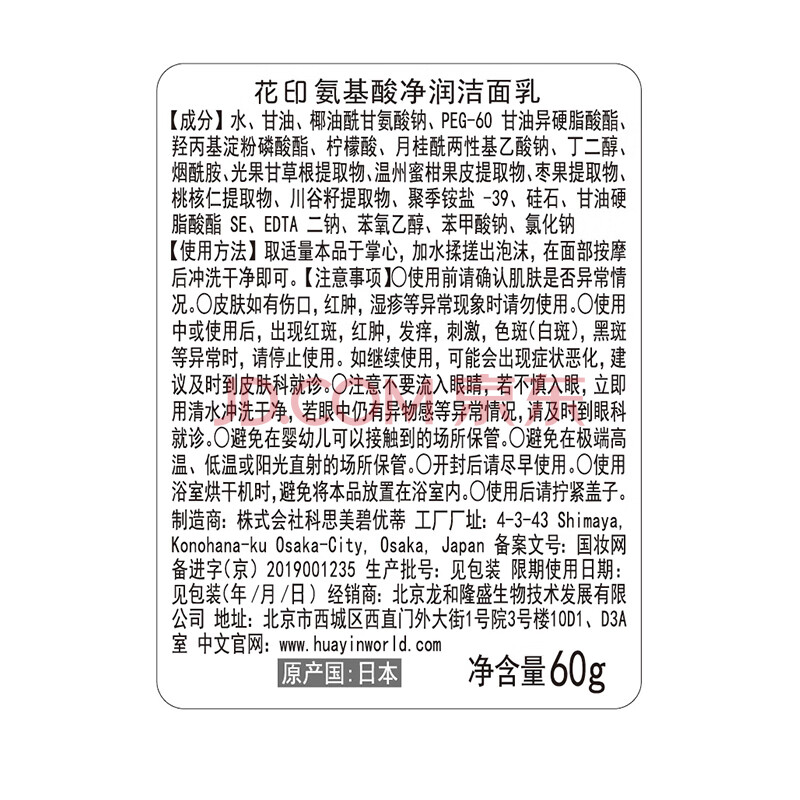 商品相册:花印氨基酸净润洗面奶60g 洗面奶女士敏感肌 温和清洁保湿舒缓第