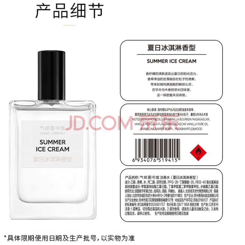 商品相册:气味图书馆夏日冰淇淋香水50ml送女友老婆(效期至2029年7月第