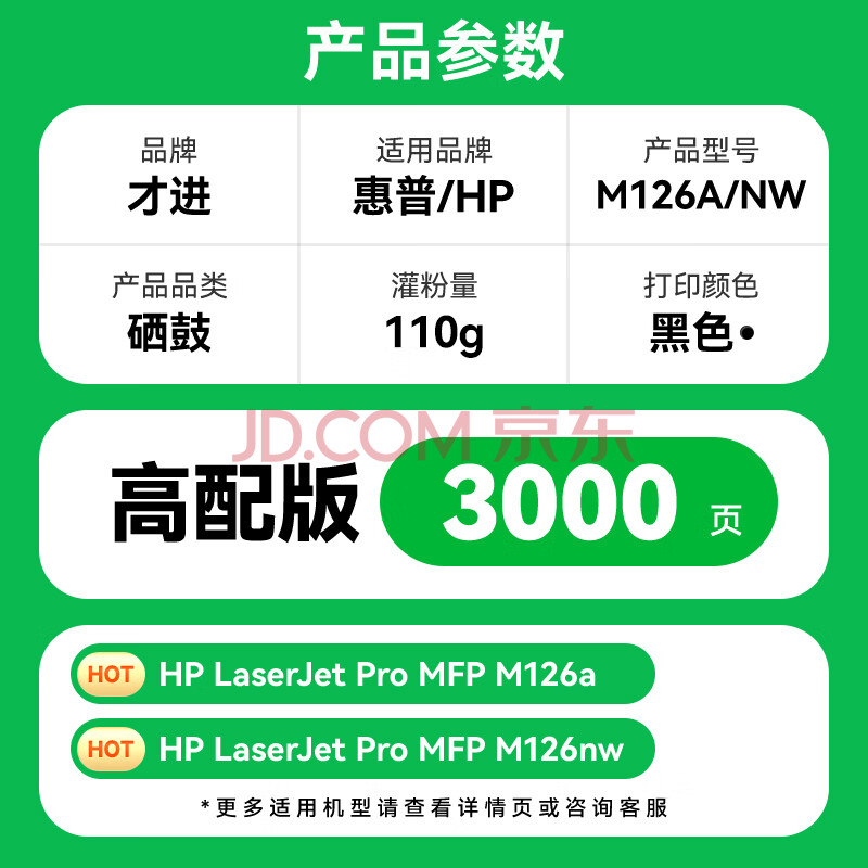 商品相册:才进适用惠普m1136硒鼓M126a/nw p1108 P1106 cc388a M128fn/fp/fw p1007 p1008打印机388a m1213nf墨粉盒88a第