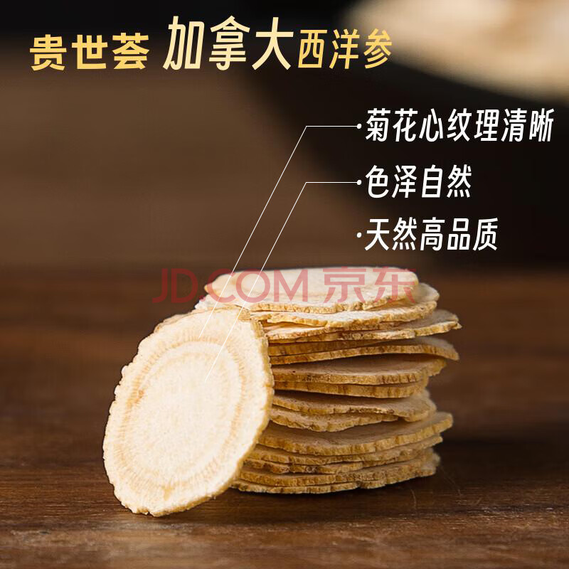 商品相册:贵世荟西洋参片加拿大进口100g花旗参含片1-1.2cm圆切片人参皂苷送长辈第