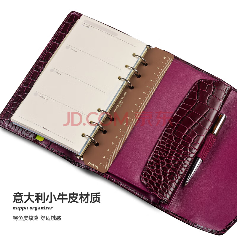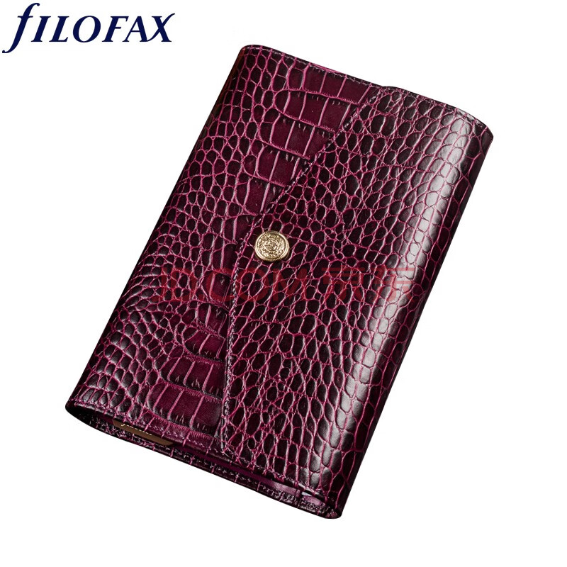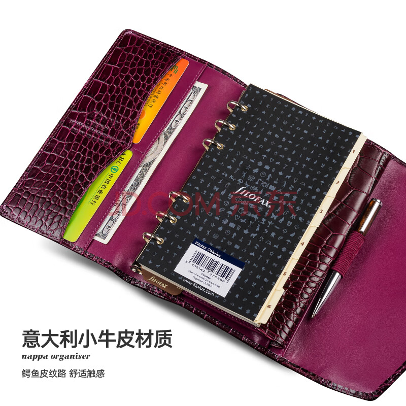 商品相册:Filofax笔记本英国进口鳄鱼纹小牛皮封面活页手帐拉链包记事本礼盒装Osterley系列A6紧凑型手包紫色028606第