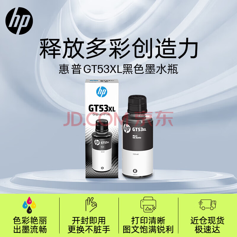 商品相册:惠普(HP)GT51/53原装黑色墨水 适用hp tank310/410/5810/5820/418/411/419/518/519打印机 135ml第