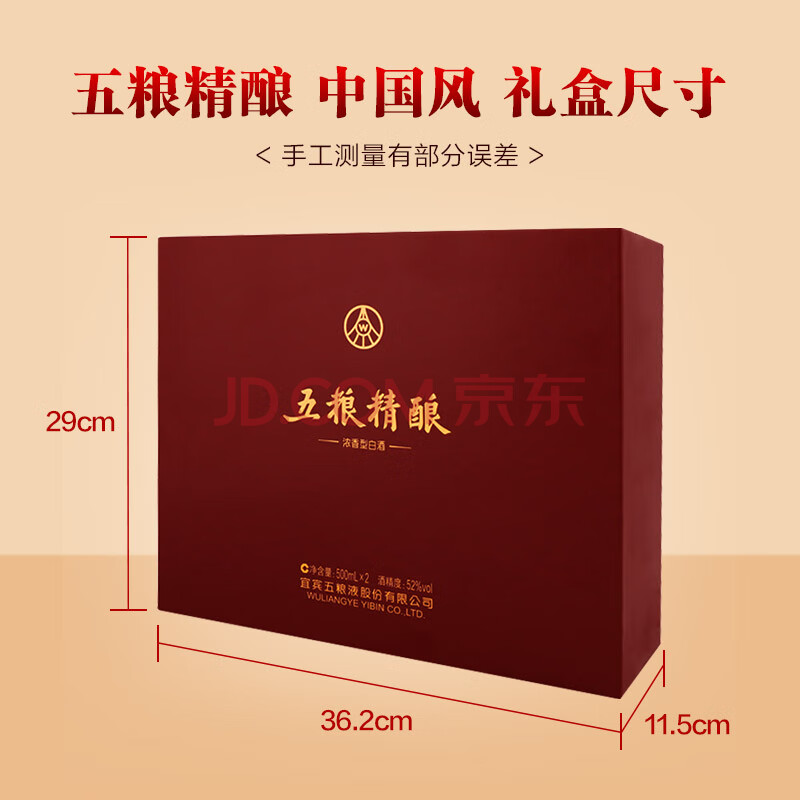 商品相册:五粮液股份 五粮精酿中国风 浓香型白酒 52度500mL*2瓶 礼盒 送礼宴饮第