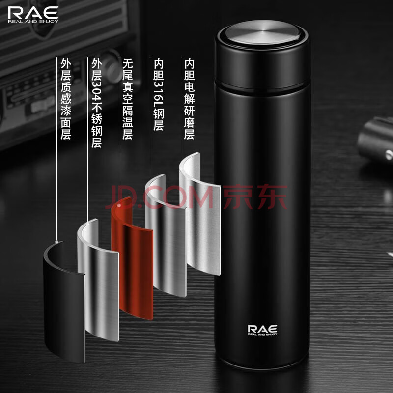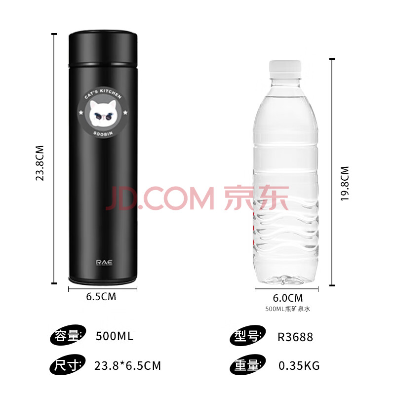 商品相册:然也保温杯定制学生316不锈钢泡茶水杯子500ml日食记黑色R3688第