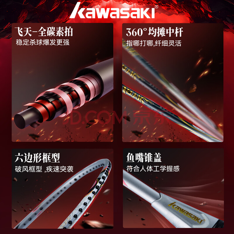 商品相册:川崎(KAWASAKI)羽毛球拍全碳素单拍5U超轻拍飞天 暮色灰(已穿线)第