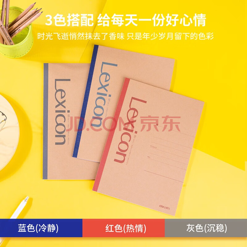 商品相册:得力(deli)12本B5/40张牛皮纸无线胶装软抄本记事本 工作笔记本子文具办公用品 7641第
