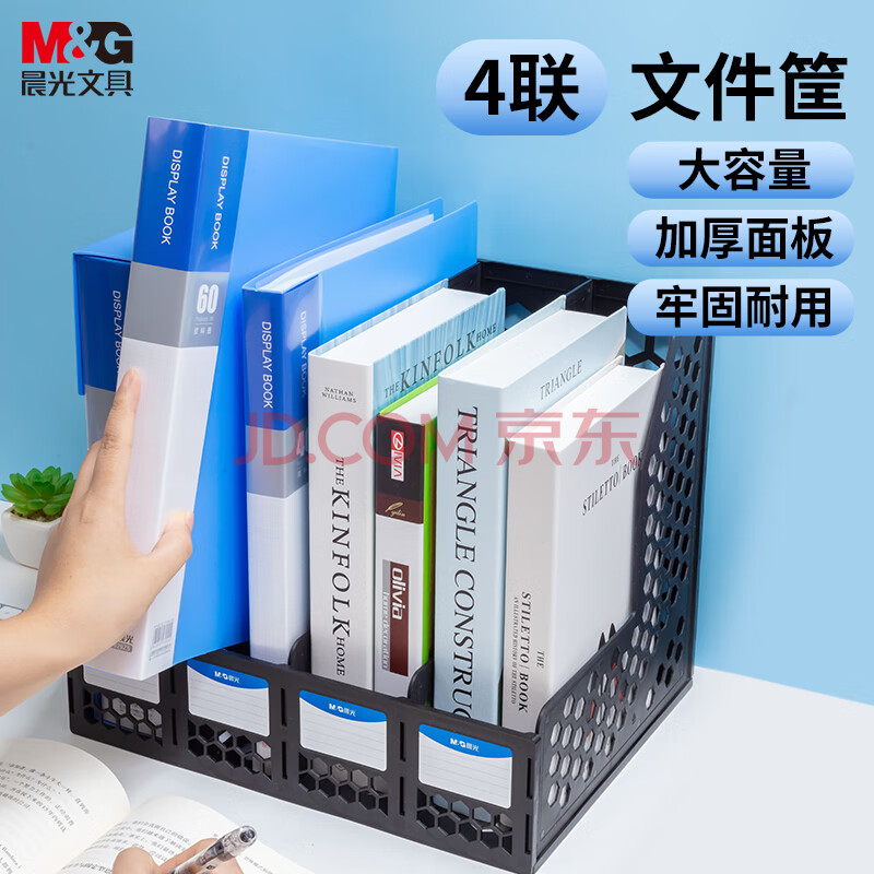 商品相册:晨光(M&G)四联收纳桌面文件框 带标签镂空文件架/文件栏/文件框/资料筐 黑色单个装ADM929R8A第