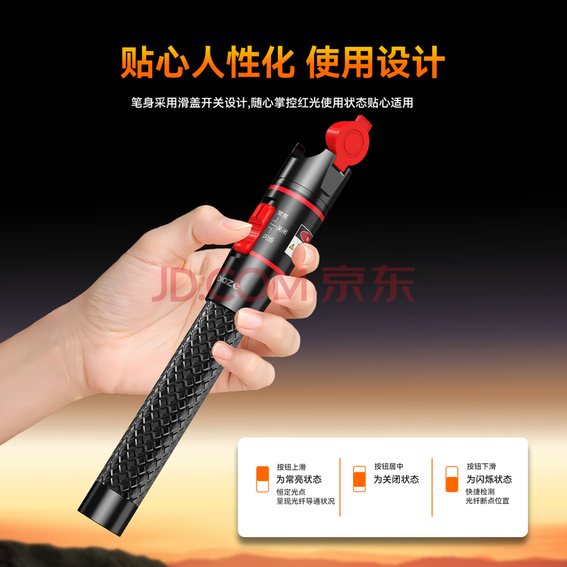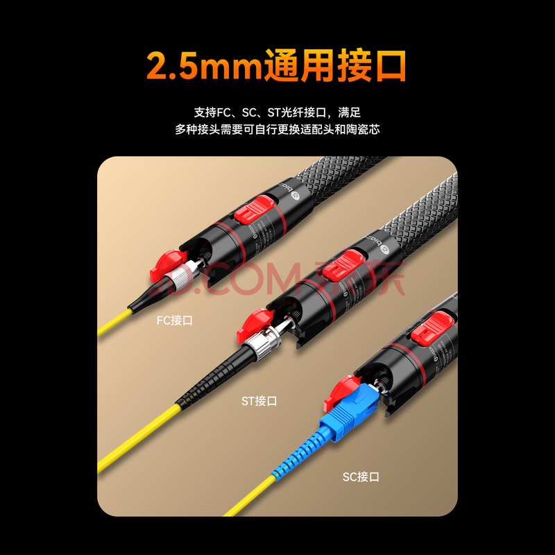 商品相册:毕亚兹 红光故障探测笔 20mW公里光纤故障定位仪 打光通光 SC/FC/ST通用冷接子 电池非充电款可换陶瓷芯第