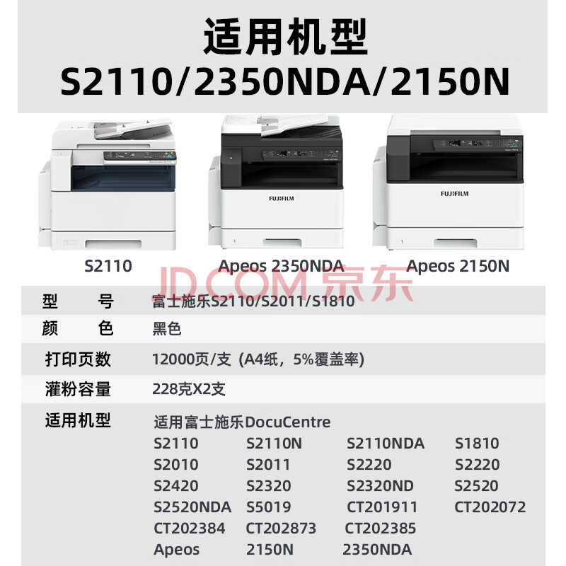 商品相册:V4INK s2110粉盒 2支适用富士施乐s2110硒鼓 2350nda粉盒2150n打印机硒鼓docucentre s2520 s2320 s2011 s1810墨粉第