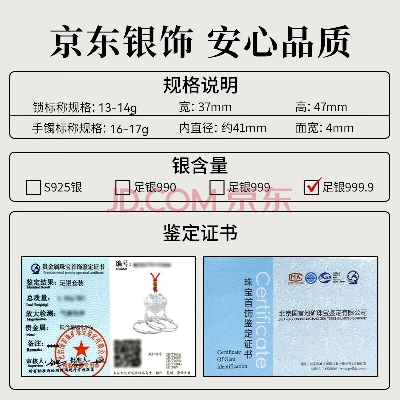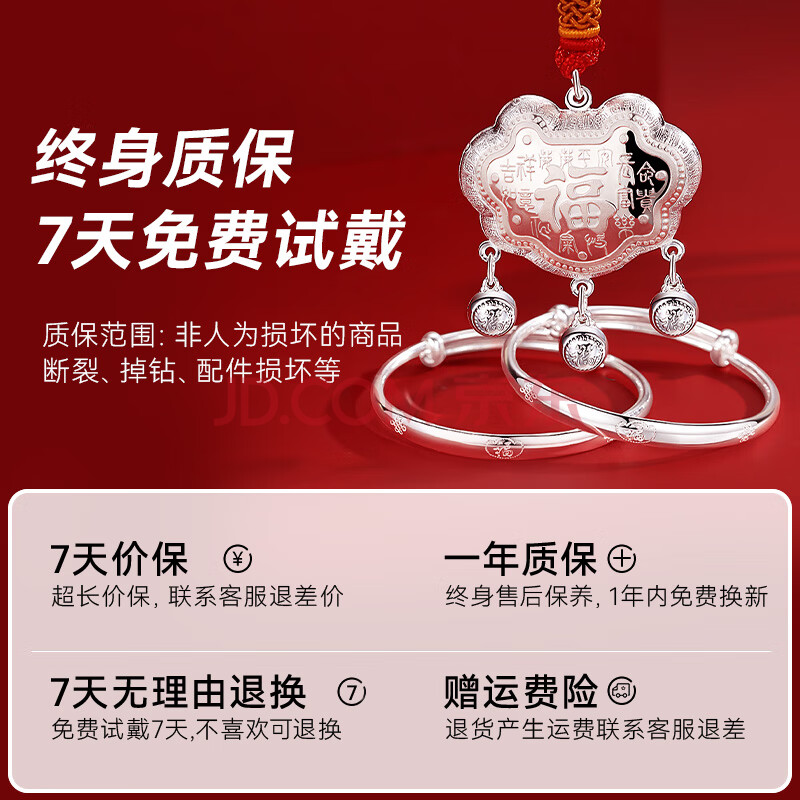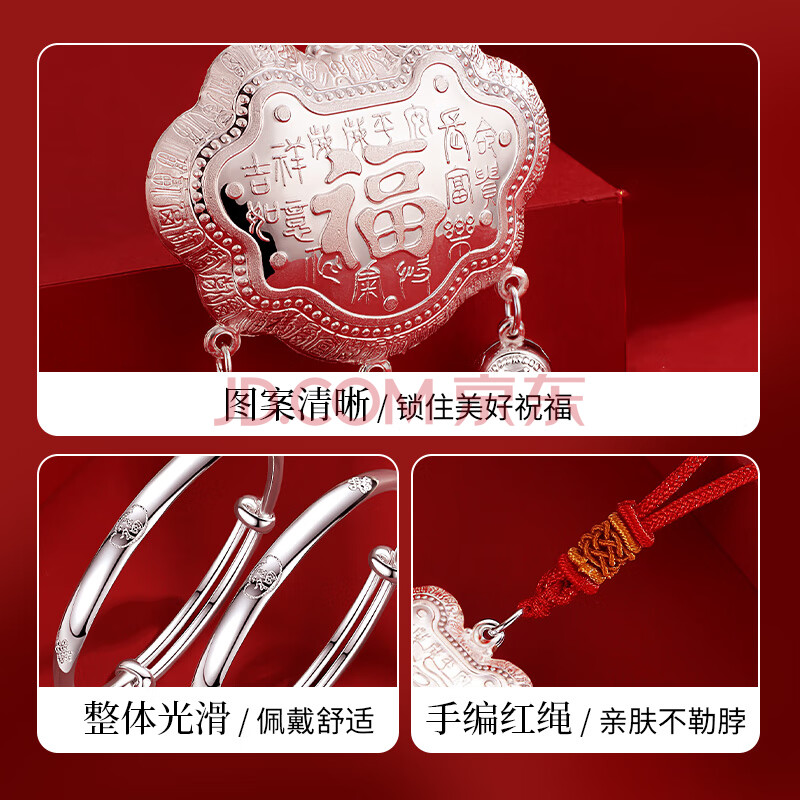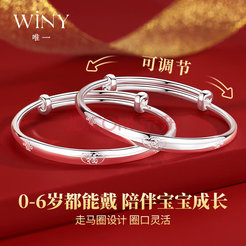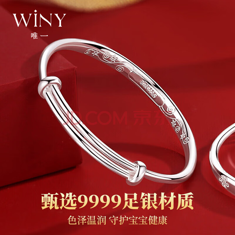 商品相册:唯一(Winy)银手镯宝宝小孩平安锁9999足银三件套新生儿见面礼满月生日礼物第