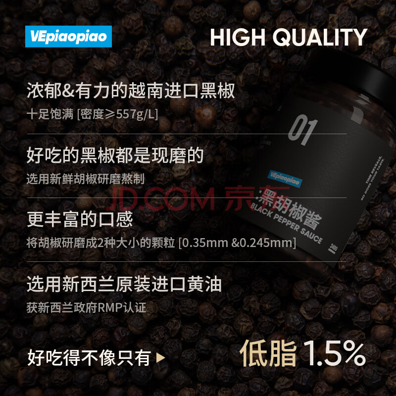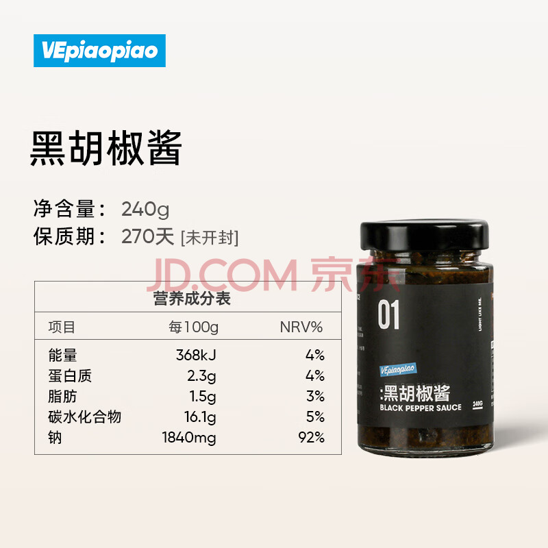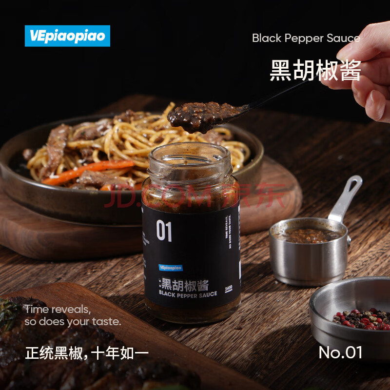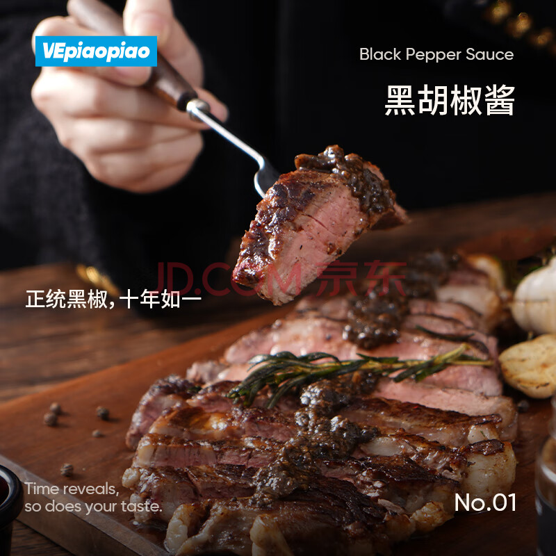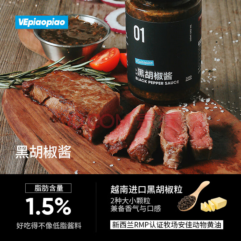商品相册:VEpiaopiao黑胡椒酱汁牛排酱调料低脂黑椒汁意大利面酱烧烤酱净含量240g第