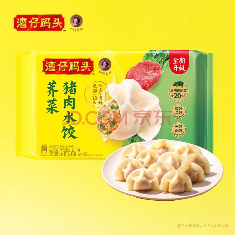 商品相册:湾仔码头荠菜猪肉水饺1320g66只早餐食品速食半成品面点生鲜速冻饺子第