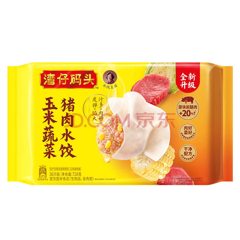 商品相册:湾仔码头玉米蔬菜猪肉水饺720g36只早餐速食半成品面点速冻饺子第