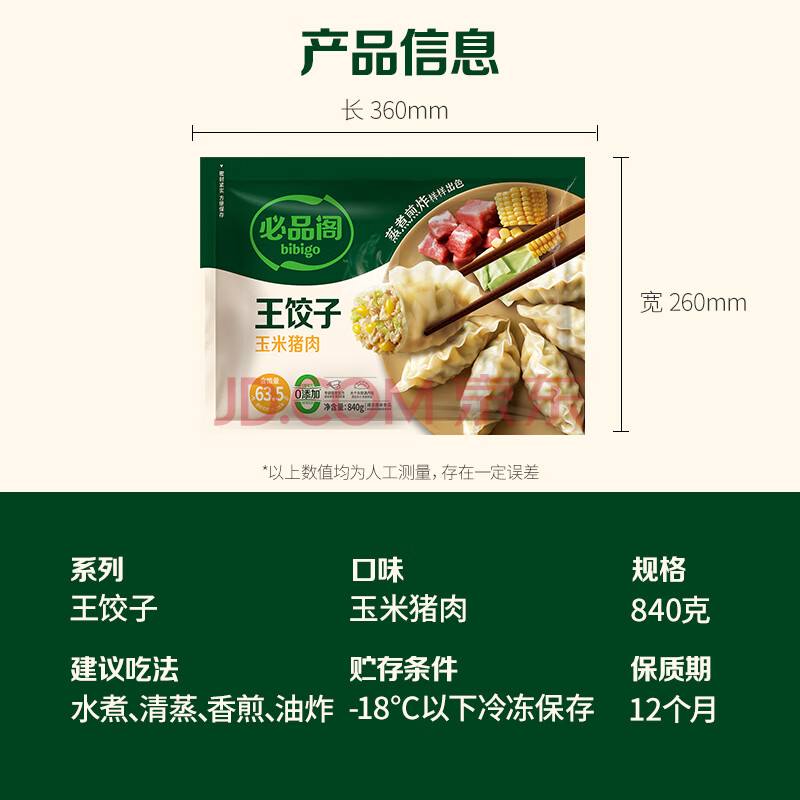 商品相册:必品阁(bibigo)王饺子 玉米猪肉840g 约24只 速冻水饺早餐夜宵 蒸饺开学季第