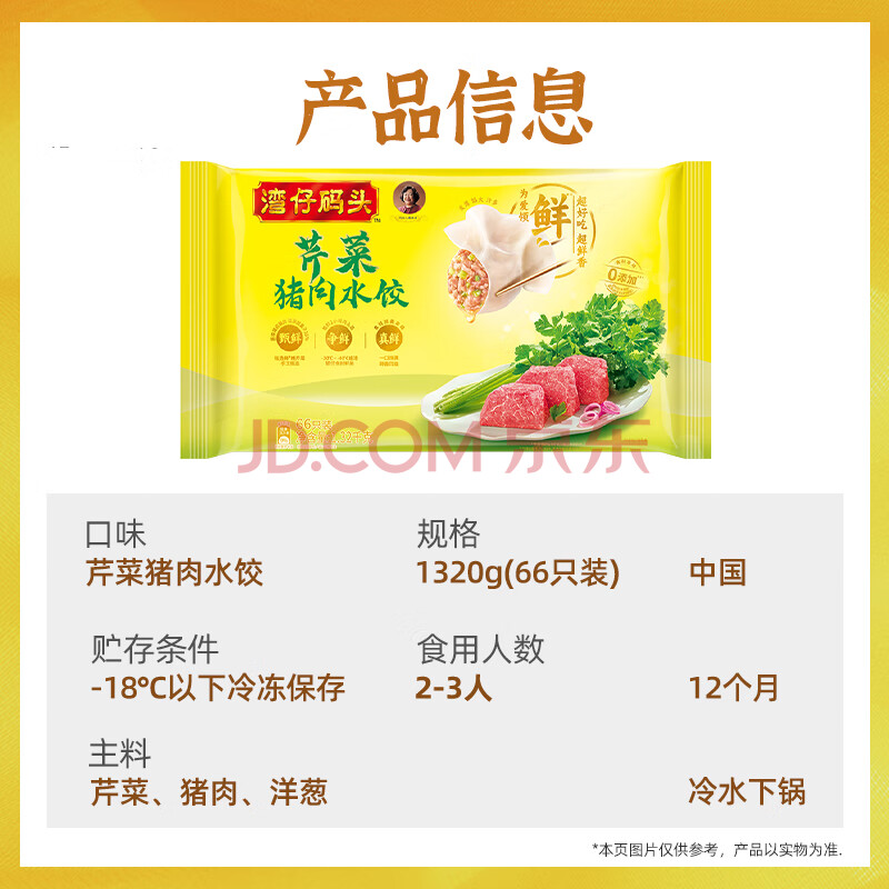 商品相册:湾仔码头芹菜猪肉水饺1320g66只早餐食品速食半成品面点速冻饺子第