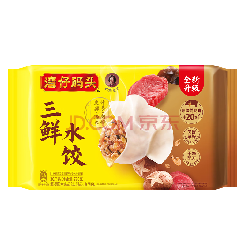 商品相册:湾仔码头三鲜水饺720g36只早餐食品速食半成品面点生鲜速冻饺子第
