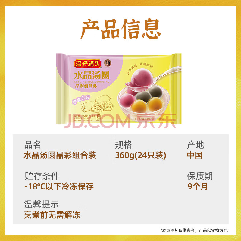 商品相册:湾仔码头水晶汤圆组合装360g24只(黑芝麻/紫薯/花生)速冻元宵早餐食品速食第
