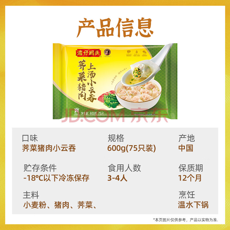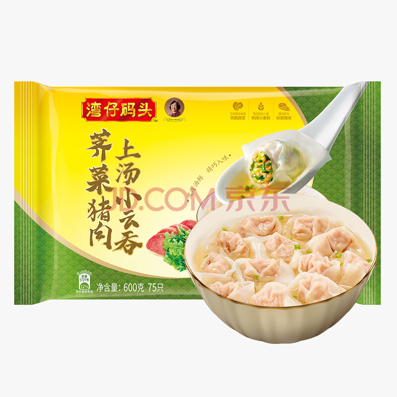 商品相册:湾仔码头上汤小云吞荠菜猪肉600g75只馄饨早餐夜宵速食冷冻混沌第