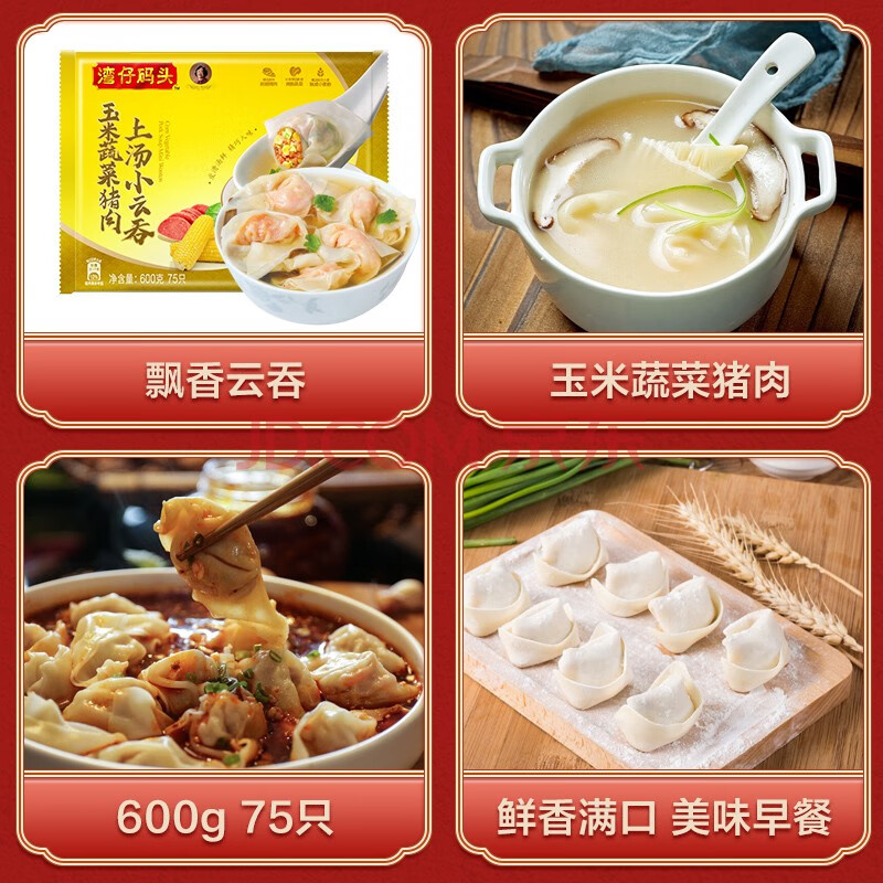 商品相册:湾仔码头上汤小云吞玉米蔬菜猪肉600g75只馄饨早餐夜宵速食混沌第