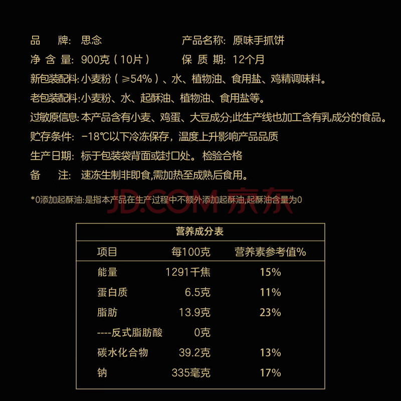 商品相册:思念台湾风味原味手抓饼900g10片 儿童早餐半成品食品第