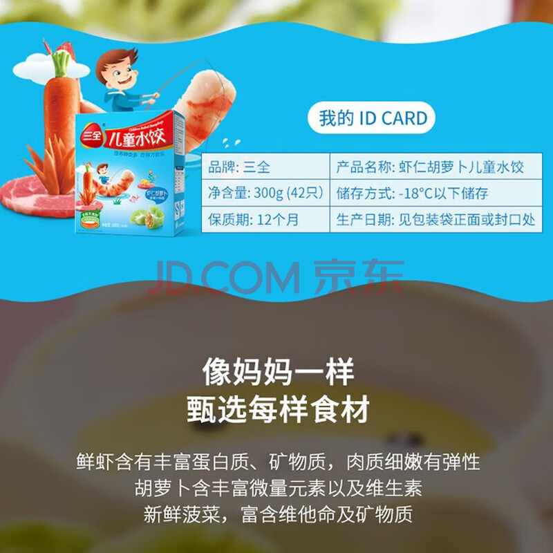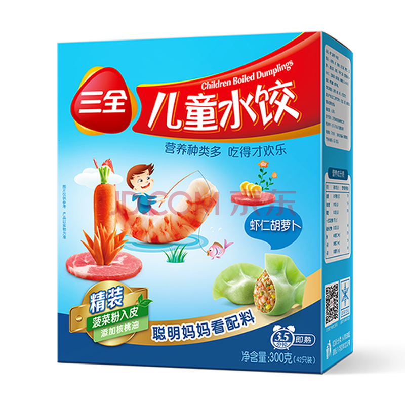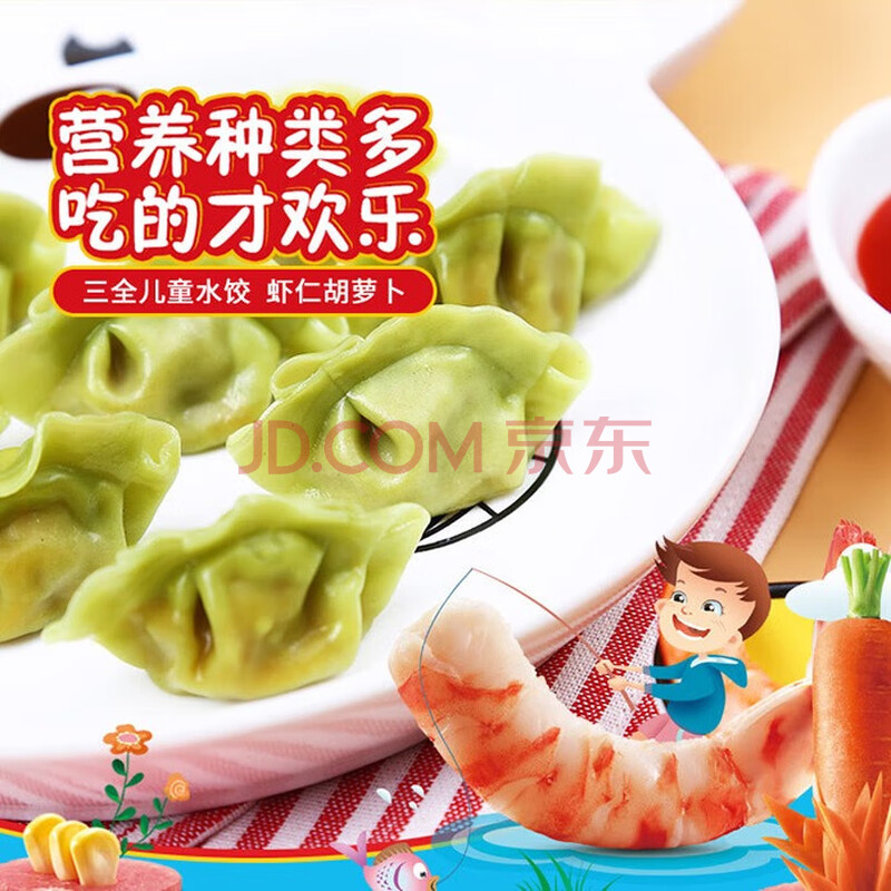 商品相册:三全儿童水饺虾仁胡萝卜300g*2盒84只宝宝饺子早餐 第