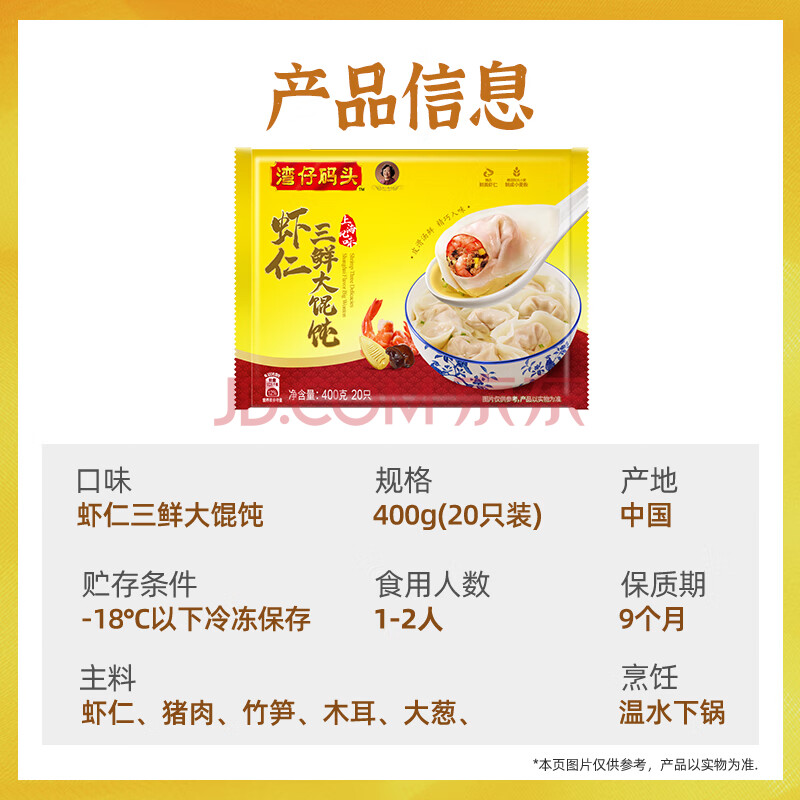商品相册:湾仔码头上海风味虾仁三鲜大馄饨400g20只云吞早餐夜宵速食混沌第