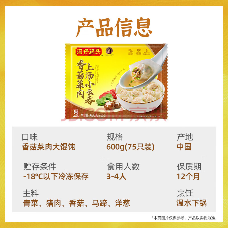 商品相册:湾仔码头上汤小云吞香菇菜肉600g75只馄饨早餐夜宵速食冷冻混沌第