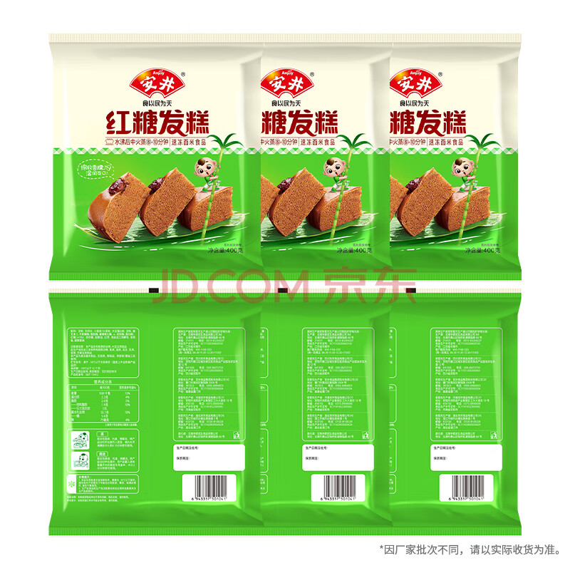 商品相册:安井红糖发糕 400g*3袋 每袋10块装 家庭装切糕面点 速冻早餐半成品第