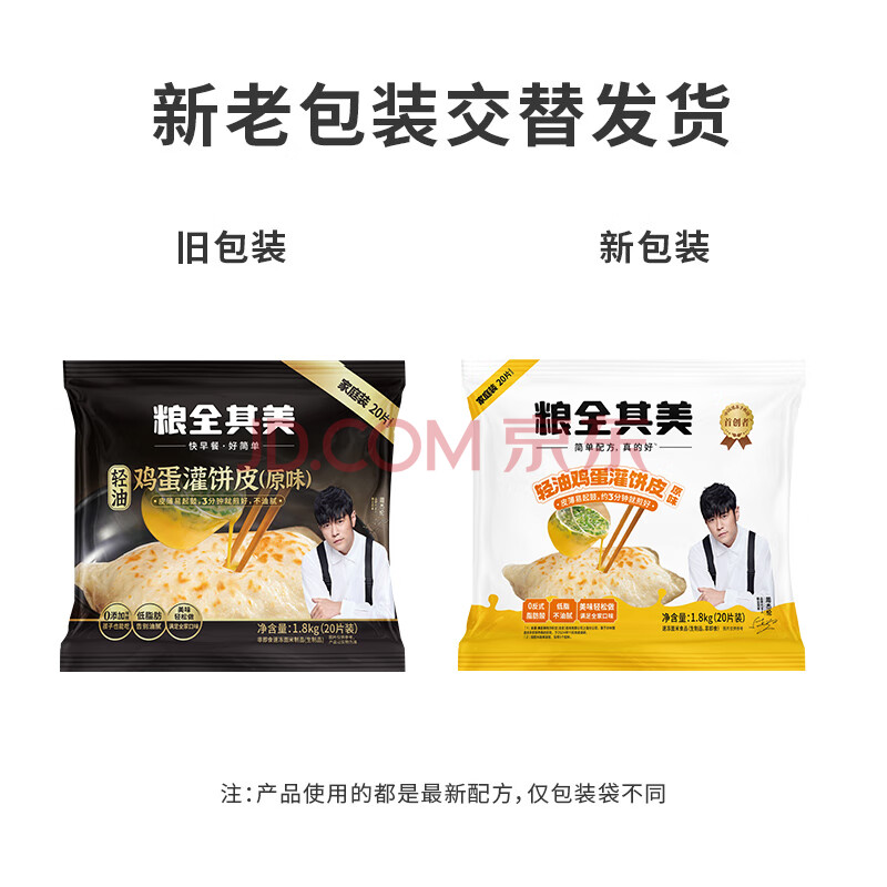 商品相册:粮全其美鸡蛋灌饼面饼皮90g*20片装鸡蛋饼 营养健康早餐饼皮速食半成品第