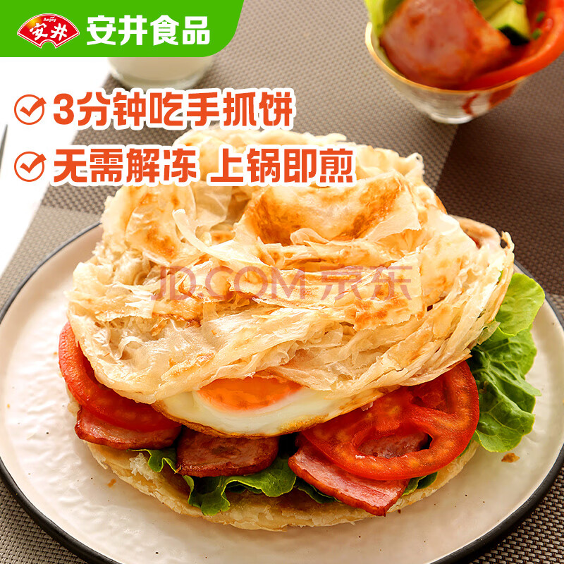 商品相册:安井桶装手抓饼 原味 2250g 25片 家庭装手撕饼煎饼 速食早餐面点第
