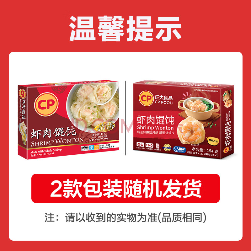 商品相册:正大食品(CP)虾肉馄饨144g12粒装 早餐云吞 商超同款 泰国原装 开学季速冻第