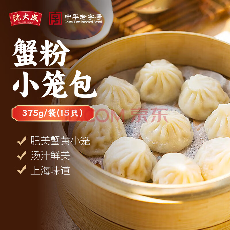 商品相册:沈大成蟹粉小笼包375g(15只)灌汤包早点包子速食老字号第