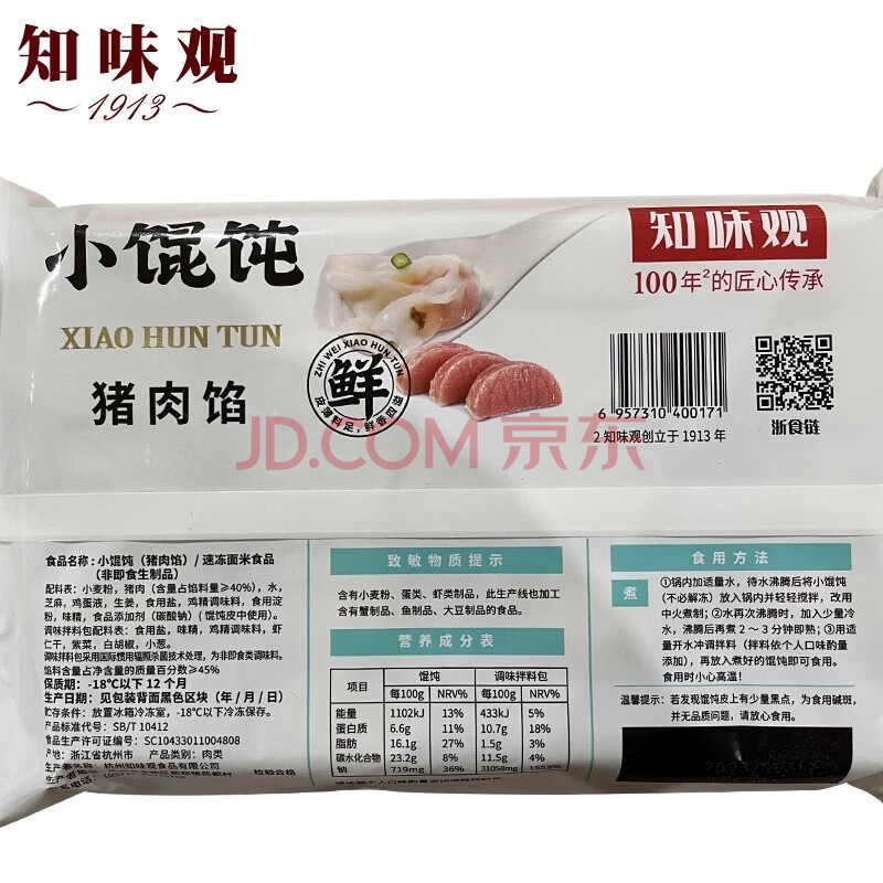 商品相册:知味观 鲜肉小馄饨320g 40只 中华老字号 早餐速食春节也送货第