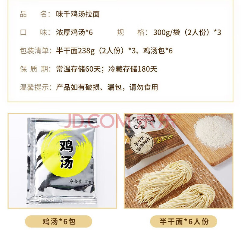 商品相册:味千拉面鸡汤拉面300g*3包 6人份含料包 早餐面食面点 冷藏面条开学季第