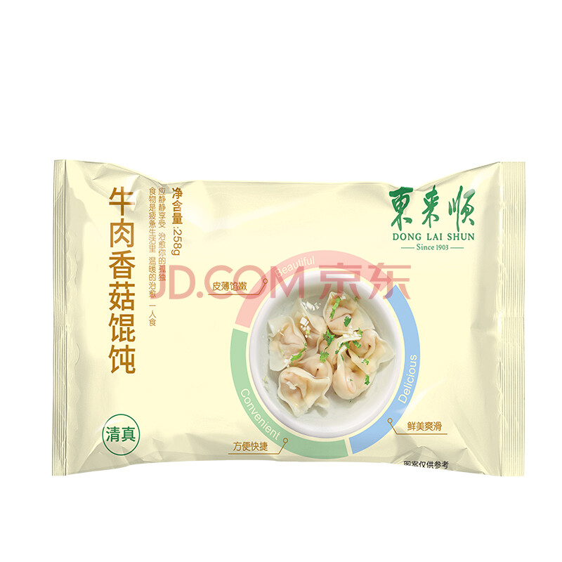 商品相册:东来顺 牛肉香菇馄饨258g(约33只) 儿童云吞混沌早餐夜宵速食清真食品第
