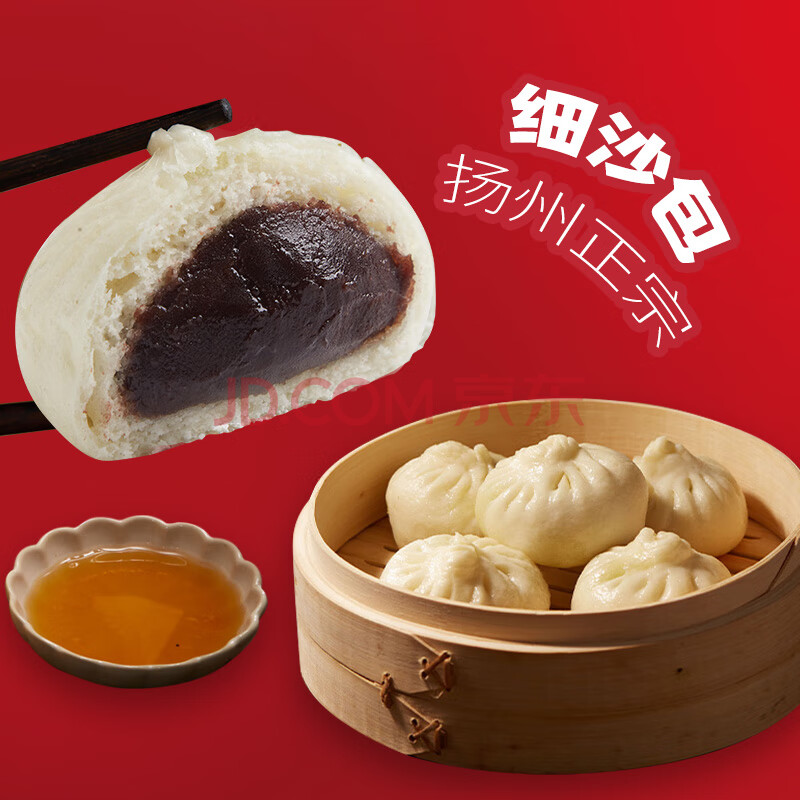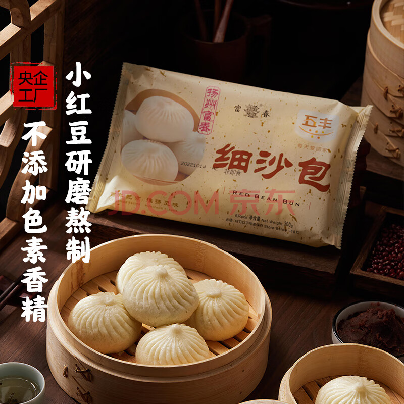 商品相册:富春细沙包300g*2 12只豆沙包装儿童早餐半成品速食速冻包子扬州特产第