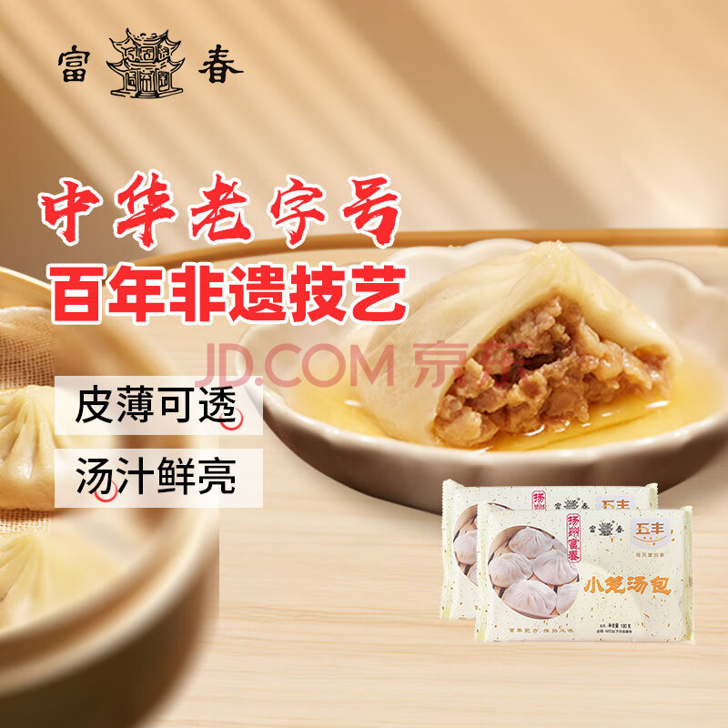 商品相册:富春 小笼汤包180g*2袋12只早餐包子速食速冻蒸包半成品 扬州特产第