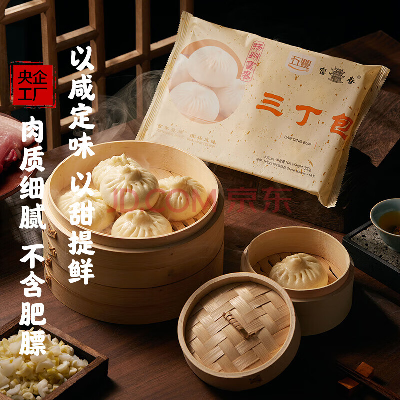 商品相册:富春 三丁包300g 6只早餐速食包子速冻蒸包笋丁鸡肉猪肉半成品面点心第