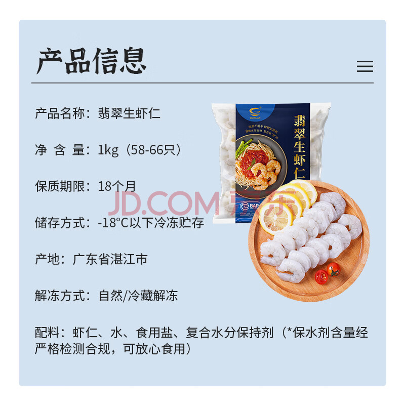 商品相册:GUO LIAN国联翡翠生虾仁去冰净重2斤加大号58-66只虾类生鲜热销600万+第