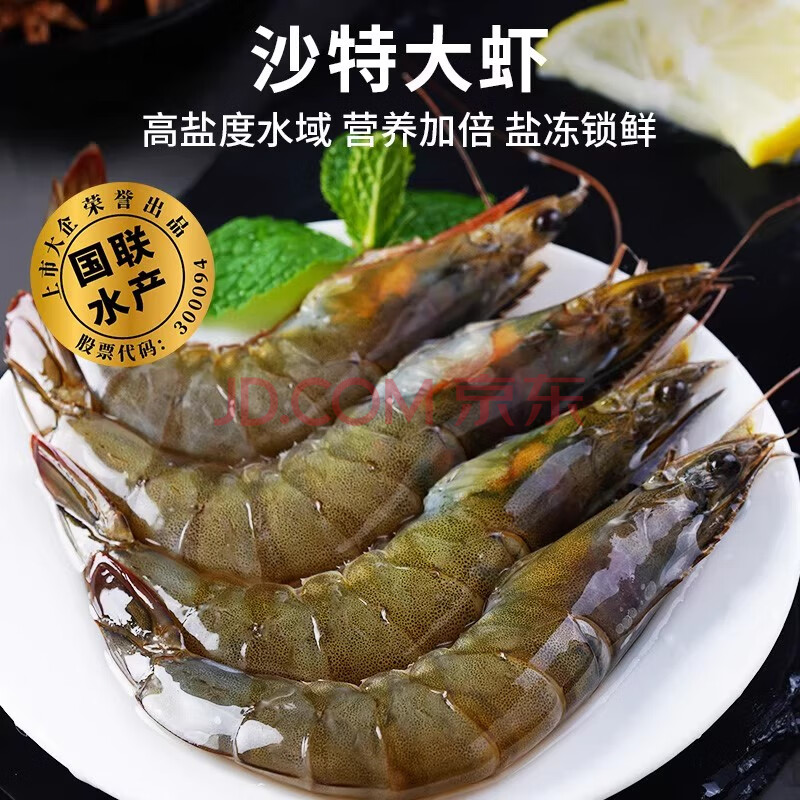 商品相册:GUO LIAN国联沙特虾盐冻大虾无冰净重4斤 100-120只 生鲜海鲜源头直发第